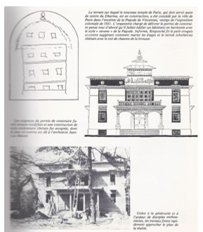 Alors que les premiers enseignements de Lama Gyourmé avec ses disciples ont lieu dans des appartements parisiens depuis la création de l’association Kagyu Dzong en 1974, le projet de construction d’un Temple émerge dès le début des années 1980. Lors de la visite du très Vénérable Kalou Rinpoché, qui transmit alors, pour la première fois en Occident, la grande initiation de Kalachakra suivie par une très nombreuse assistance dans la grande Pagode, le secrétaire général de l’Institut International Bouddhique émit le souhait d’assurer les conditions d’une meilleure animation en cette enceinte.