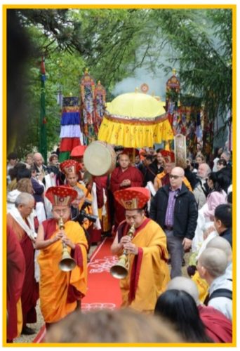 Et, depuis près d’une quinzaine d’années, nous avons la grande bénédiction de recevoir, chaque année, Son Eminence Djetsun Khandro Rinpoché pour des cycles d’enseignements sur la nature de l’esprit et, régulièrement, Mingyur Rinpoché lors d’un cycle d’enseignements intitulé « la joie de vivre ».